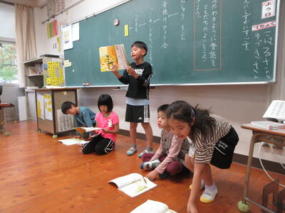 4月24日(水)、2年生は国語科授業で「ふきのとう」をグループで音読しました。