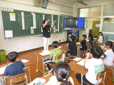 6月24日、習字先生として地域学校協働活動で大里先生に来ていただきました。