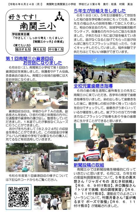 NO.6 240624 学校だより 「好きです! 南関三小」6号(南関第三小学校).pdf