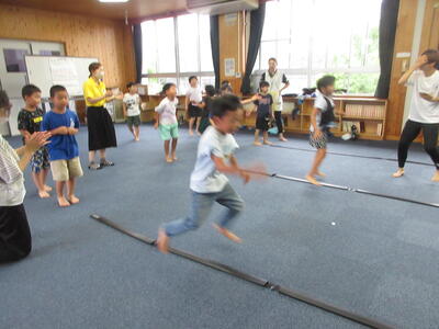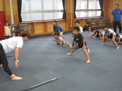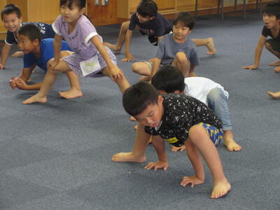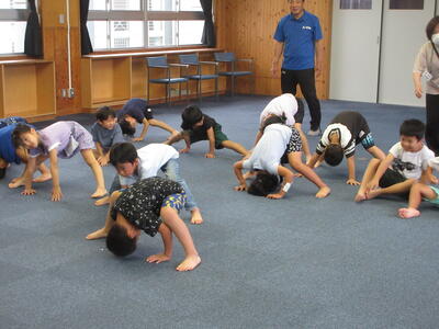 7月11日(木)の放課後子供教室では、庄山先生にお世話になり、体を動かすレッスンを受けることができました。