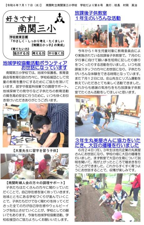 NO.8 240717 学校だより 「好きです! 南関三小」8号(南関第三小学校).pdf