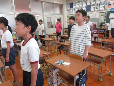 9月20日(金)、朝の会にて6年生は長崎への修学旅行へ向けて自分たちで練習に取り組んでいます。長崎市の平和公園で平和集会を行い、「青い空へ」を平和実現へ心を込めて歌ってきます。