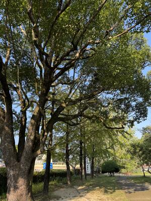 秋が深まり、南関第三小学校の銀杏の木が色づきはじめています。銀杏の実もたくさん落ちてきています。