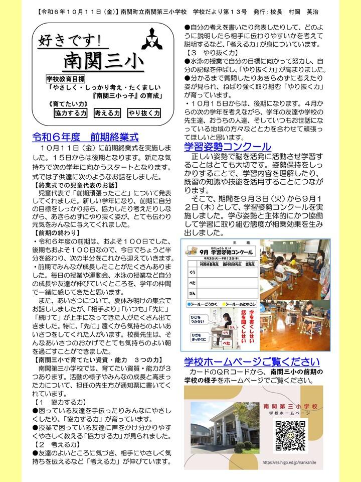 NO.13 241011 学校だより 「好きです! 南関三小」13号(南関第三小学校)(HPアップ).pdf
