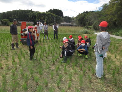 「稲を入れる機械は、自動でどんどん入っていくから手が入ったらいたそうだな、と思いました。」「かけ干しから、稲を取りはずす作業を夢中になって、手が止まらないくらいがんばりました。」「脱穀が終わるまで、稲を運びつづけたことを、地域の先生からほめてもらいました。この言葉は、忘れません。」
