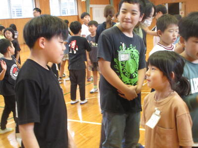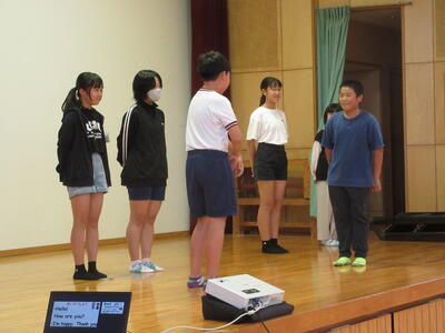 Hello songを全員で歌ったり、たてわり班や全校児童で英語でのあいさつを会話で行ったりしました。