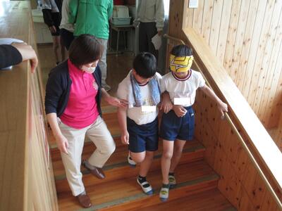 4年生は社会福祉協議会が実施していただく視覚障がい者介助体験で、