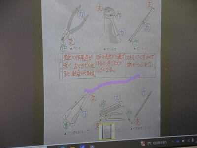 11月18日(月)、6年生は理科授業でのてこの働きの学習で、力点、作用点、視点等を実際にはさみやピンセットなどを使って学んでいました。