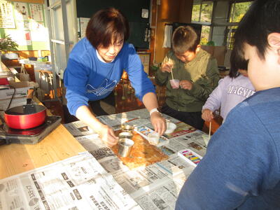 12月3日(火)、南関町教育委員会の寺田指導主事が来校され、なかよし学級の授業と2年生の国語科授業を参観していただきました。なかよし学級の自立活動では、キャンドルのプレゼントをするという目的で、きれいな色のキャンドルを考えたり、ろうを2段階に分けて流し込み、その上にぴったりの相手が喜ぶような飾り付けを行っていきました。