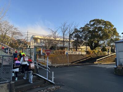 12月9日(月)、3年生は総合的な学習の時間で大豆栽培学習を行っています。大豆を収穫して、脱穀体験をしました。丸美屋さんにいつもお世話になっています。