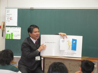 Happy English Dayに2年生に校長先生から英語の本の読み聞かせがありました。