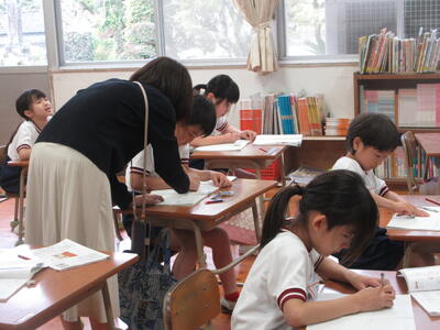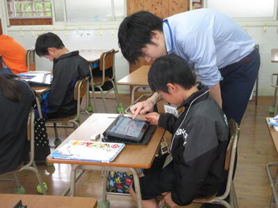 4月22日(火)、算数専科の牛島先生が来校された5年生の算数科授業では、既習事項をについて、タブレット端末の学習アプリや副教材などを使い、定着確認の徹底を行っています。できているところは更に定着、不安なところは確認しながら、定着確認の徹底をしていきます。
