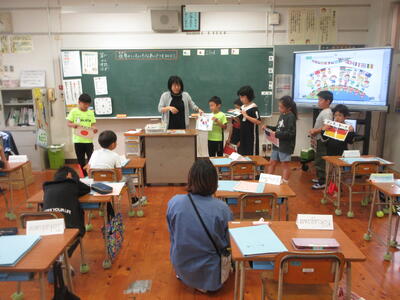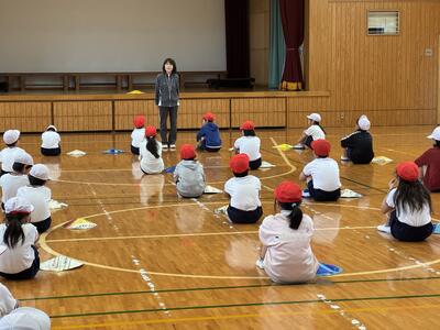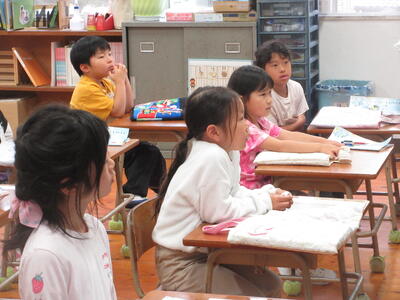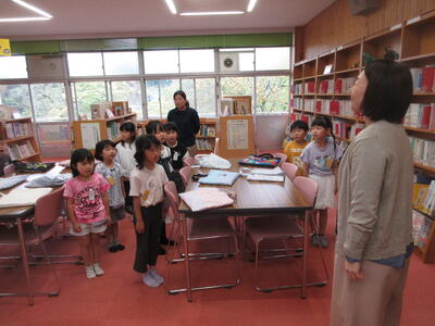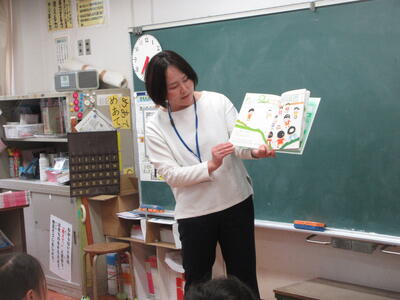 4月23日(水)、図書室から教室に戻った1年生は、担任の先生から読み聞かせをしてもらいました。