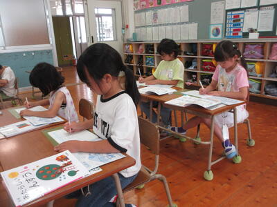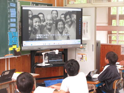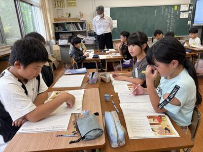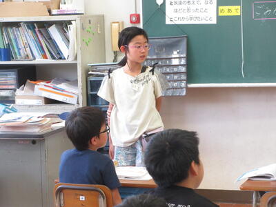 4年生は、千代の話(熊本の心)という教材で、家族の一員として親や祖父母に尽くそうとする心情を育てるねらいで授業を行いました。