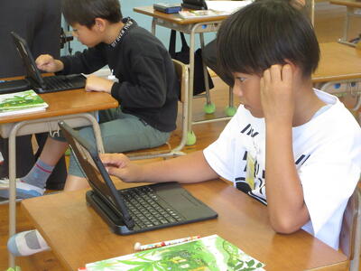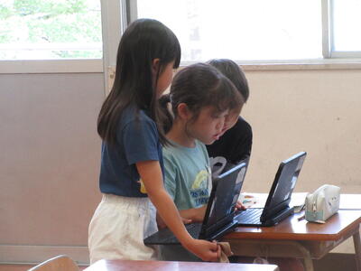 相手意識を持ち、自ら考え、学び合う児童の育成を目指して、子供を学びの主体とする個別最適な学びと協働的な学びの一体的充実を図ることを進めています。