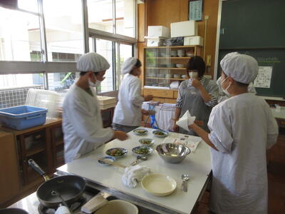 6月5日(木)、6年生は家庭科授業で野菜炒めを調理しました。