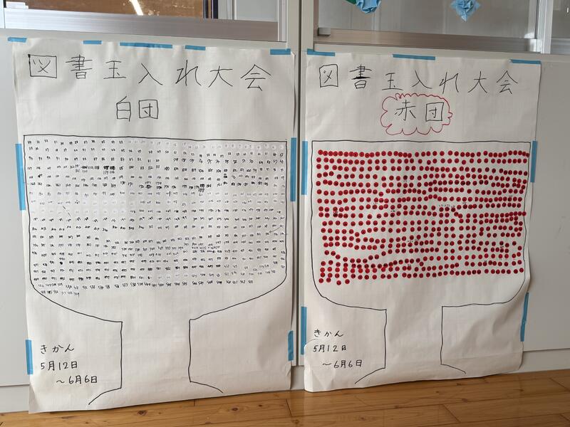 図書委員会が計画し実施してきた図書玉入れ大会は、南関第三小学校のみんなが本を借りて読むことに意欲を増す取組となりました。赤団571冊、白団559冊ということで、本当にギリギリの結果となりました。