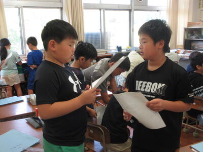 6月25日(水)、6年生は図工科授業で制作した作品を全校児童に披露しました。