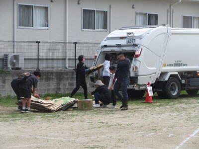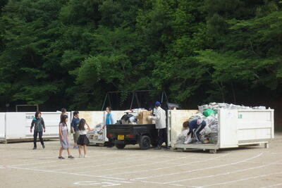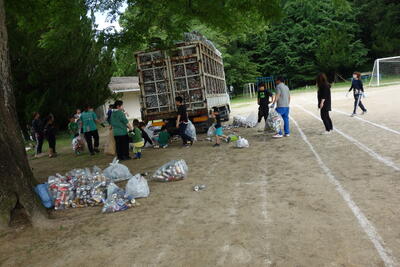 資源回収当日は、早朝からPTA役員さんを始め、ひまわり部と体育部の方々に交通整理や資源物の運び出し、整理をしていただきました。1本道でしたが事故なくスムーズに行うことができました。大変お世話になりました。
