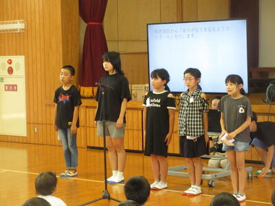 6月17日(火)、全校集会で企画委員会による「ありがとうを伝えようコンクール」が提案されました。