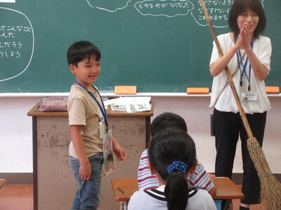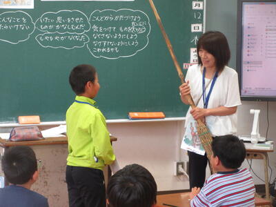 2年生は、ぬぎすてたぞうり(熊本の心)という教材で、自分の身の周りを整理整頓し、物を大事に扱う態度を育てるというねらいで授業を行いました。