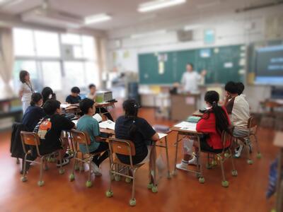4年生は班で話し合いをしています。