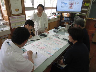 6年生は理科授業で、「尿検査は何のためにしているのか」というめあてで学習をしました。