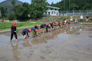 地域の方々の温かいご支援をいただきながら、ばっちり田植えができました。はじめはおっかなびっくりしていた子どもたちも、慣れてくるとてきぱきと作業を進めることができるようになりました。