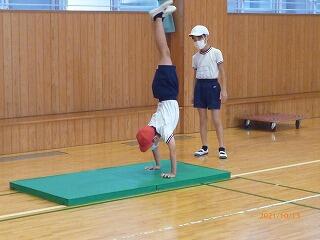さらに難しい、頭はねとび(ヘッドスプリング)にも挑戦しました。また、A-lifeから講師の方に来ていただき、体育のサポートをしていただいています。