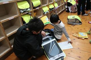 6年生は朝から1年生の教室へ行き、朝の準備のサポートをしています。