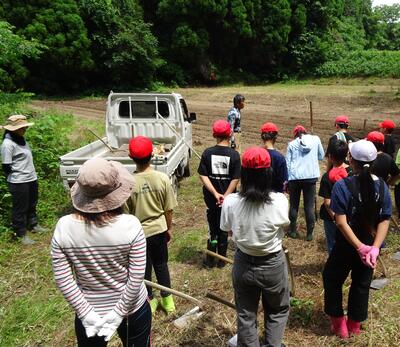 5月28日(水)に、サツマイモの畝(うね)作りと、マルチはりが行われました。6年生は、2日(月)に行われる苗植えに向けて張り切って取り組んでいました。