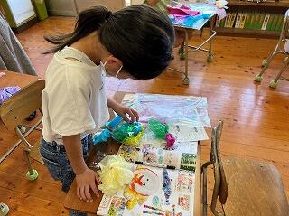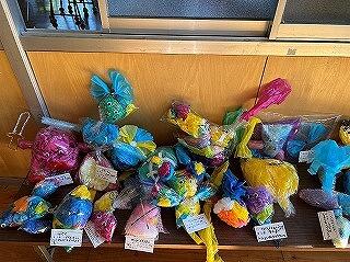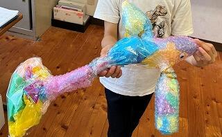 透明な袋に紙花や色紙をくしゃくしゃにして入れて