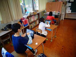 今回は、eライブラリに取り組みました。eライブラリとは、インターネットを利用したAIドリル学習ソフトです。タブレット端末を使い、子どもたちがそれぞれ自分のペースで学習を進めています。