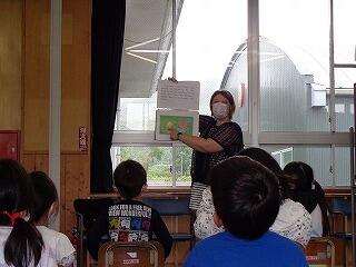 日にちや天気を英語で確認した後、英語の歌や紙芝居などをしてくださいました。