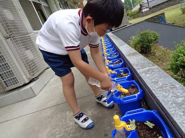 生活科の学習で、一人一鉢にあさがおの種を植えました。