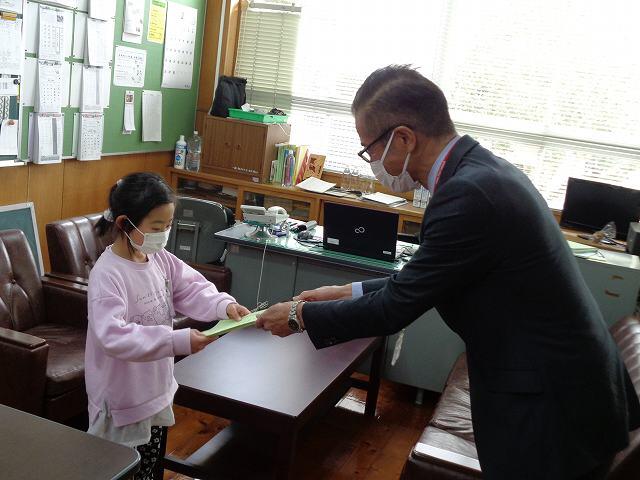 郵便局長さんに来校していただき、直接表彰を行っていただきました。
