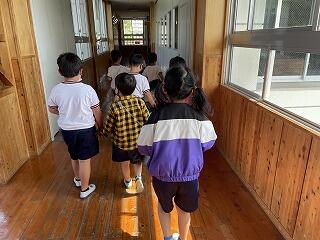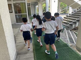 1,2年生合同のグループをつくり,2年生が1年生を案内し,校内の施設を紹介しました。