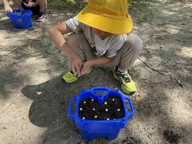 丁寧に一粒ずつ植える1年生。その後も肥料と水やりを丁寧にしていました。
