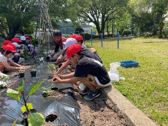 2年生の生活科では、夏野菜の苗植えを行いました。