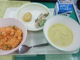 今日は学校給食定番の子供達にたいへん人気のカレーでした。ほくほくのじゃがいもがとても美味しいカレーでした。
