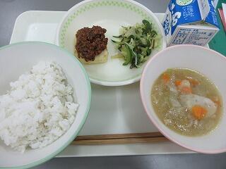 今日は、マーボなすでした。なすの皮には、ブルーベリーと同じで目の疲れを取る働きがあるナスニンが多く含まれているそうです。