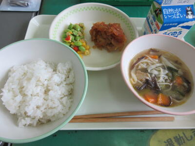 今日の給食は、新紙幣の偉人にちなんだ新紙幣メニューでした。1万円札の渋沢栄一が好んで食べた煮ぼうとう、5千円札の津田梅子にちなんだ梅マヨサラダ、千円札の北里柴三郎の故郷小国町にちなんだ高菜そぼろでした。毎日、子どもたちが楽しく食べるように工夫された給食、ありがたいです。