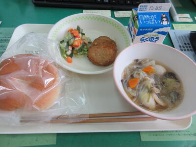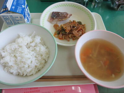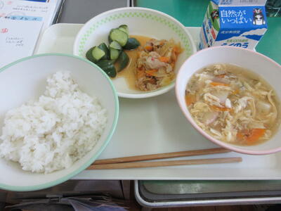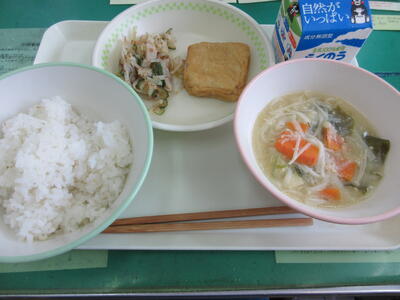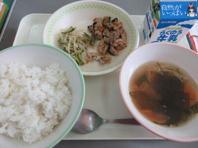 今日は、スープの中にめかぶが入っていました。めかぶは、食物繊維がたくさんふくまれているそうです。
