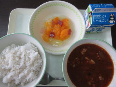今日はカレーうどんでした。カレーうどんは、もともと日本料理のそば屋さんが日本の「うどん」とインドの「カレー」を、それぞれの国の良いところを取り入れて作ったのが始まりだそうです。