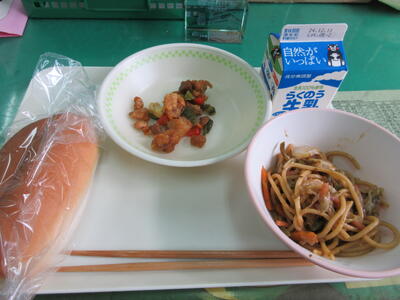 今日は、やきそばでした。「そのまま食べる」「焼きそばパンにする」お好みで分かれました。