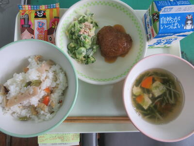 今日は、ふるさとくまさんデーでした。阿蘇のメニューでしたので、たかなめしもありました。高菜漬けを炒めてご飯にまぜた、たかなめしでした。おいしかったです。