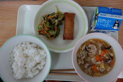 本日は、中華丼の具、はるまき、塩昆布あえ、ごはん、牛乳でした。