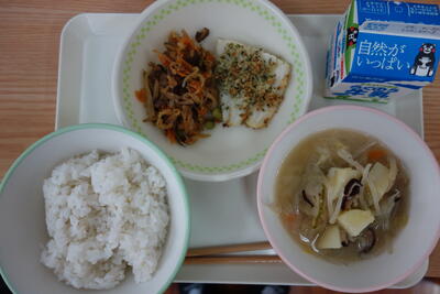 本日は、じゃがいものみそ汁、ホキのパン粉焼き、切り干し大根炒め、ごはん、牛乳でした。