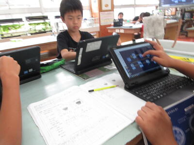 理科授業ではタブレット端末を用いて、ロイロノートを使いしっかり考え、考える力を身に付けています。