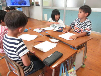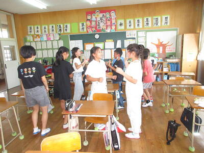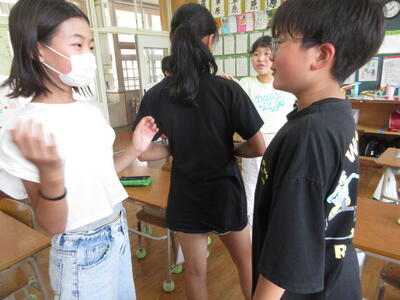 5年生が英語でやり取りをしている様子です。とても上手に相手に質問したり答えたりして、自分のことを伝え合っています。